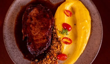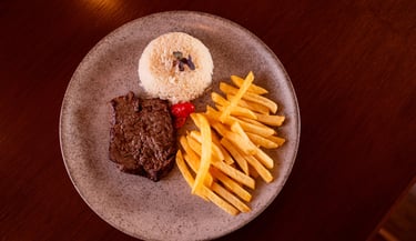 Ancho Angus com cebola crispy