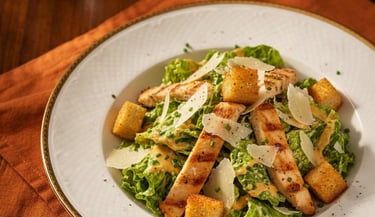 Alface, frango em tiras, croutons, parmesão ralado e molho caeser